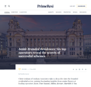Chris Graham’s recent interviews* with VPs at 6 leading operators in the branded residences sector are featured in Prime Resi, revealing their thoughts on what makes successful schemes.